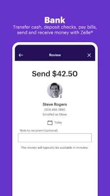 • Deposit checks, pay bills, transfer money, and send & receive money with Zelle® on select devices