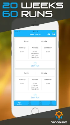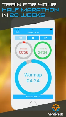 Use the Vandersoft Half Marathon app to improve your stamina, endurance, and health to help you run a Half Marathon! Your body's strength will gradually increase over time with interval training.