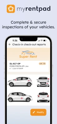 The myrentpad vehicle inventory application offers many advantages to simplify the management of your vehicle fleet: Thorough inspection tracking: vehicle pick-up, drop-off, and replacement. Vehicle inventory. Selection of visuals for inspection: photo, diagram, sketch, etc. Stored documents are accessible, traceable, and secure. Save claim documents. Inspection report e-mailed directly to the customer. Re-billing management: fuel and damage.
